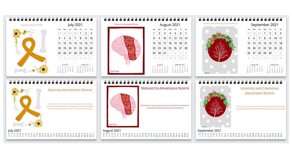 The 2021 PHOSA Awareness Calendar is a 12-month, spiral bound, standing calendar featuring artwork handmade by PHOSA members. Our goal is to help spread awareness on 12 specially selected diseases and disorders. Each month contains an original art piece and interesting fact about the ailment selected for that month.